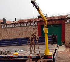 小吊機是可以配合貨車一起使用的,兩者組合在一起就有了一個新的名稱:“車載小吊機”。車載小吊機在使用時不用壓配重,直接在底座擰螺絲擰到車廂內就可以使用了。